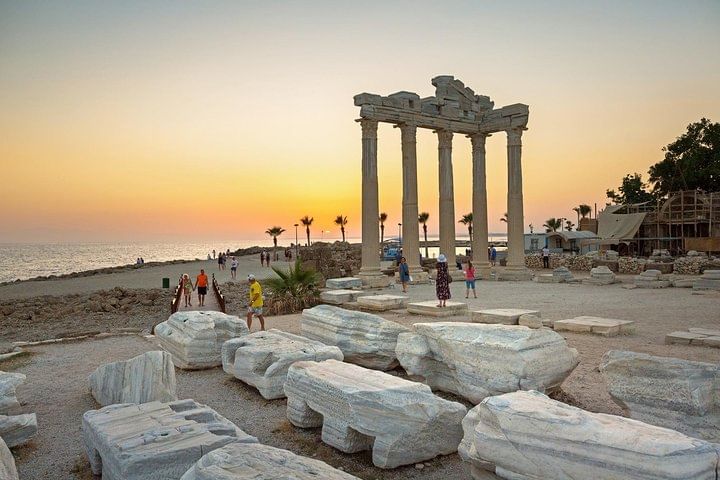 Next, enjoy lunch before heading to the stunning ancient city of Side, located on a picturesque peninsula. Wander among Roman ruins, including a grand amphitheater, a colonnaded street, and temples dedicated to Dionysus and Apollo. The Temple of Apollo, standing proudly by the sea at the ancient harbor, is one of the most iconic and breathtaking sights in the region.